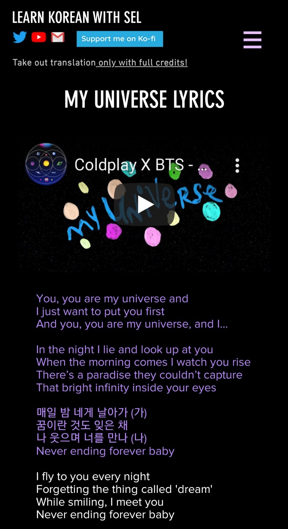 1 day agoMy Universe You You You Are Korean Lyrics And They Said That We Cant Be Together Because Because We Come From Different Sides. My Universe 02. Coldplay BTS - My Universe Romanized Lyrics.