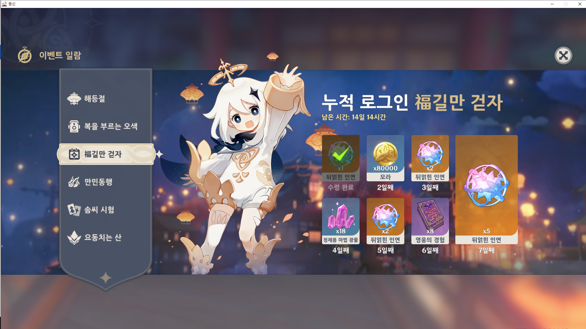원신 식도락 여행기 출석체크 이벤트 진행방법 원석 보상